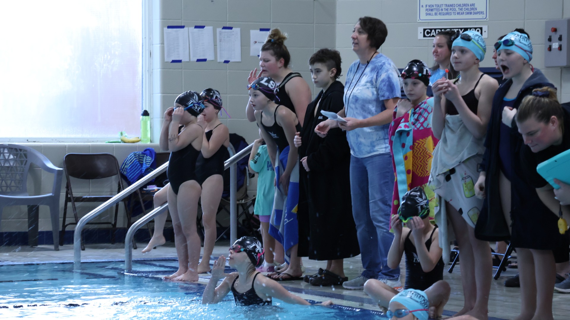 The event number and heat number for the current event will be on the scoreboard. Staging volunteers will help your swimmer go up the event BEFORE their event so they are ready and behind the blocks and in the proper lane. Swimmers should report with his/her cap on and goggles ready.