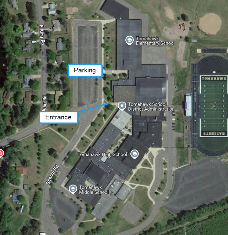 Follow the school driveway left and go around to the front of the complex to the Elementary School parking lot. The pool & fitness center entrance is Door #6.